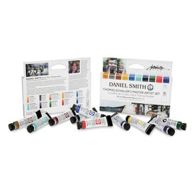 “DANIEL SMITH Ekstra İnce sulu boyalar resim yapma biçimimi zenginleştiriyor. Güzel doğal pigmentler kağıdın vadilerine batar ve kanıtlanmış ışık haslığıyla şeffaflık ve parlaklıkla yüzer. Diğer markalardan daha iyiler; hayatımı ve resim yapma biçimimi değiştirdiler.”Önde gelen mimari sanatçılardan biri olan Thomas W. Schaller, "yapılı dünya ile doğal dünya" arasındaki karşıtlığı yaratmak için resimlerinde DANIEL SMITH Suluboyalarını kullanıyor. Karışımlarını kişiselleştirmesine ve sonsuz fırsatlar için kağıt üzerinde harmanlamasına olanak tanıyan sofistike renkleri seviyor. DANIEL SMITH'i ilk kez 2011 yılında Seattle'daki genel merkeze öğretmenlik yapmak üzere davet edildikten sonra kullanmaya başladı.Thomas günlük paletinde genellikle 12-14 renkle çalışıyor, bu nedenle bu Usta Sanatçı Setini oluşturmak için en sevdiği renklerden yalnızca 10'unu seçmenin zorluğu göz korkutucuydu. Aydınlık ve karanlığı yakalamak için etkileyici ısıtma ve soğutmaların mükemmel karışımını bulmak amacıyla seçimi birkaç kez yeniden düzenledi. Örneğin diğer birçok kırmızıya karşı Maya Portakalını seçti çünkü bu, "serinletme özelliğine sahip, güzel, çok yönlü bir renk." Imperial Purple'a bayılıyor ve onu sıklıkla güçlü kontrastlar için kullanıyor. Favorisi Kobalt Teal Mavisi. “Günlük hayattan farklı renkler ortaya çıkarıyor. Gölge, gökyüzü, deri, su, taş işçiliği ve çok daha fazlası olabilir. Mavi-yeşil bana kendimi ifade etmem için pek çok seçenek sunuyor.” Bu setteki her rengin kendine özgü bir gücü var, ancak Thomas bu paletin çok yönlü olduğuna ve her sanatçının benzersiz ifadesini teşvik eden çok çeşitli renk karışımları sunduğuna inanıyor. İçerdiği renkler: Neutral Tint, Burnt Sienna Light, Cadmium Yellow Deep Hue, Cobalt Blue, Cobalt Teal Blue, Imperial Purple, Jadeite Genuine, Mayan Orange, and Ultramarine Blue.