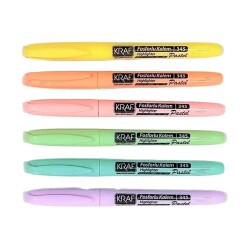 Kraf Pastel Fosforlu Kalem Cep Tipi 6 Renk Set