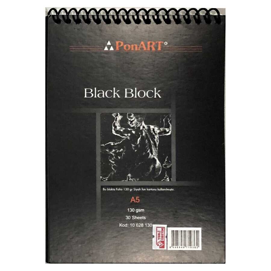 Ponart Black Blok Spiralli Siyah Defter 130 gr. 30 Sayfa A5