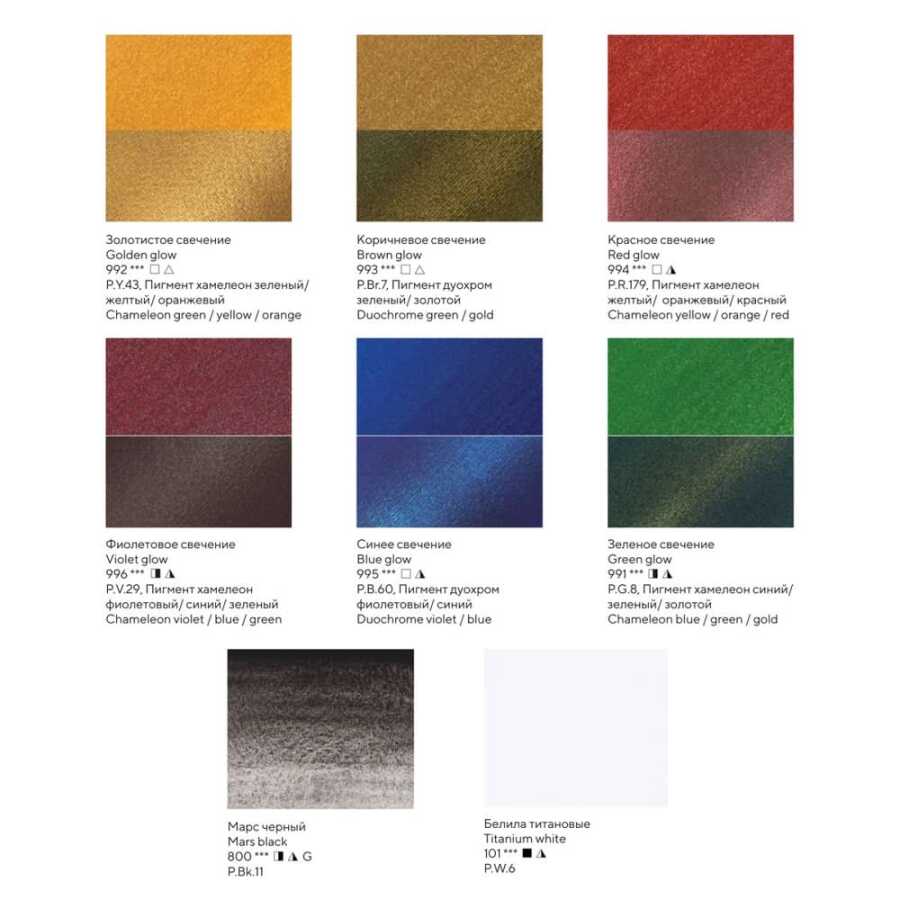 Ekstra ince sanatçıların suluboyaları White Nights'ta parıldayan koleksiyonun sınırlı sayıdaki baskısıyla tanışın. Renkler, serideki birincil renk çizgisini tamamlar; vurgular yerleştirmek, işe doygunluk ve parlaklık katmak ve ek dekoratif efektler yaratmak için kullanılabilirler. Renklerin adı, kompozisyondaki parıldayan parçacıkların özelliklerini yansıtır - "Flare", "Shimmer", "Glow", "Shine", boyuta ve yanardönerlik derecesine göre ayrılır. "Flare"de belirgin bir parlaklık ile "Shine"da narin inci-inci ile en büyüğünü paylaşır.