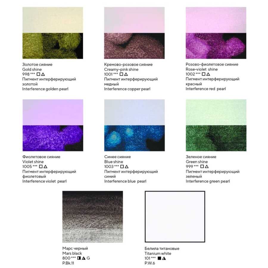 Ekstra ince sanatçıların suluboyaları White Nights'ta parıldayan koleksiyonun sınırlı sayıdaki baskısıyla tanışın. Renkler, serideki birincil renk çizgisini tamamlar; vurgular yerleştirmek, işe doygunluk ve parlaklık katmak ve ek dekoratif efektler yaratmak için kullanılabilirler. Renklerin adı, kompozisyondaki parıldayan parçacıkların özelliklerini yansıtır - "Flare", "Shimmer", "Glow", "Shine", boyuta ve yanardönerlik derecesine göre ayrılır. "Flare"de belirgin bir parlaklık ile "Shine"da narin inci-inci ile en büyüğünü paylaşır.