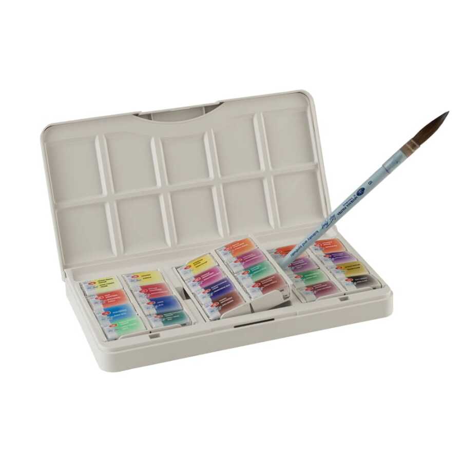 Watercolours White Nights profesyonel sanatçılar için yaratılmıştır. Yüksek kaliteli ince taneli pigmentlerden ve bağlayıcı olarak doğal bir arap zamkından yapılırlar. White Nights suluboya güvenlidir, sertifikalıdır ve ASTM D-4236 standartlarını karşılar. Kompozisyondaki en yüksek pigment konsantrasyonu, renk tonunun maksimum yoğunluğunu sağlar, rengi tek bir fırça darbesiyle etkinleştirmek kolaydır. Doygunluk, çok miktarda suyla seyreltildiğinde bile korunur. White Nights Suluboya paleti, sanatçının ince sırlarla çalışmasına olanak tanıyan şeffaflıkla ayırt edilir. Saf renkler, karışımlar halinde boyama yapmanıza ve zengin çeşitlilikte tonlar elde etmenize olanak tanır. Boyaların çoğu, eserlerin 100 yıldan fazla korunmasına katkıda bulunan en yüksek ışık haslığına sahiptir. Tüm özellikler ve özellikler, önemli suluboya çalışmaları için yüksek kaliteyi garanti eder. White Nights setinin dengeli paleti, sanatçının suluboya çalışmaları yaratması için yeterli olan 24 renkten oluşur. Set plastik bir kutuda sunulmaktadır.