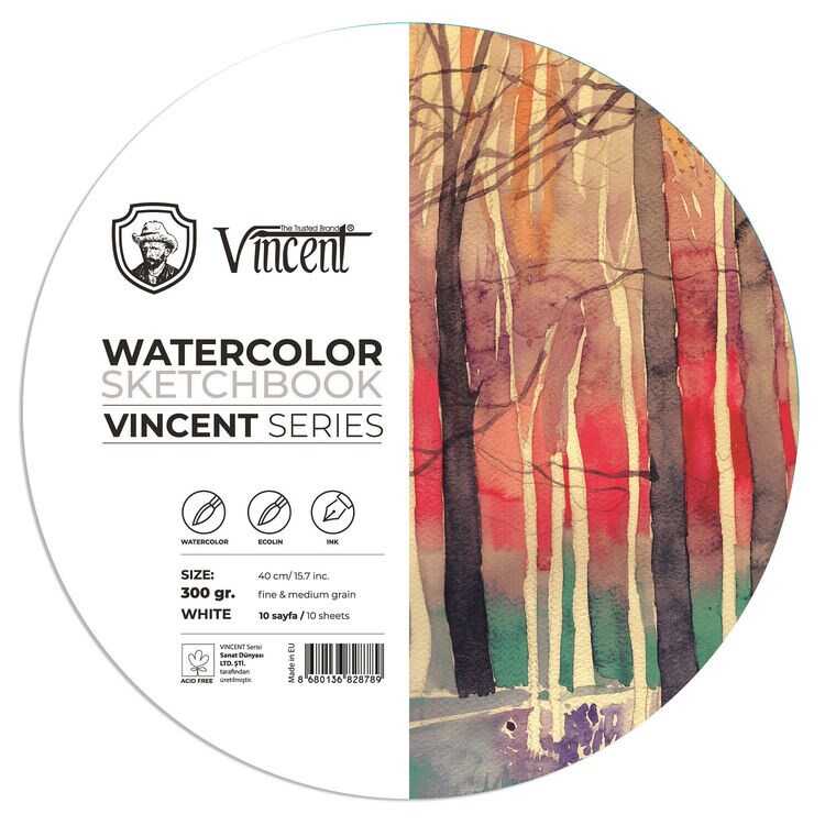 Vincent Watercolor Sketchbook White Daire Suluboya Blok 300 gr 40 cm 10 Sayfa